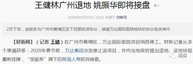 近日,广州开发区规划和自然资源局(简称“广州资规局”)以挂牌方式出让黄埔区YH-A3-8地块的国有建设用地使用权,起拍总价15.47亿元,折合楼面价约3464元/平方米,计划于3月27日限时竞价。该宗地块位于广州市黄埔区长岭居永顺大道以南,总用地面积133252平方米,用地性质为医疗卫生用地、交通场站用地、商业用地兼容其他服务设施用地、兼容社会停车场用地,计容面积44.66万平方米。相对于去年的挂牌信息,本次挂牌起拍价足足提高了2亿元,但计容建面也有所增加,所以楼面价较之去年反而有所降低。有媒体从广州土储交易中心获悉,YH-A3-8地块再次挂牌是由于万达退地。另据知情人透露,目前有神秘人已准备好接手该项目。3月2日,据财新记者从多个渠道获悉:2020年春节前,万达集团决定停止该项目,并向当地政府提出退地。该地块现重新挂牌,“宝能系”旗下的前海人寿即将接盘。2018年10月,万达集团董事长王健林曾赴广州与黄埔区政府签订合作备忘录,约定双方投资建设万达匹兹堡大学医学中心(UPMC)国际医院。当年12月28日,双方签订投资协议,约定项目占地约200亩,建筑面积40万平方米,总投资额约为60亿元。2019年5月20日,万达地产集团底价13.43亿元拿下了黄埔区YH-A3-8医疗地块。去年下半年,该项目施工方已经入场进行前期基础施工。随着该地块被重新摆上货架,外界方知万达放弃了这块地,项目已停工。至于退地原因,万达方面没有透露;有指该地块出让条件严苛,万达无法达到要求,另有消息人士称,因为资金问题,万达要放弃投资周期太长的项目,转向快速现金流项目。巧合的是,3天前,在广州黄埔区举行的2020年第一季度重大项目签约及集中开工动员活动中,姚振华这个新项目,宝能国际总医院(宝能广州国际健康城)作为此次集中动工的重大产业项目之一首次公开亮相。据“南方+”报道,宝能广州国际健康城位于科学城长岭居片区,占地面积13.3万平方米,投资总额66亿元。而这些信息与YH-A3-8地块情况基本吻合。姚振华在现场表示,宝能在黄埔区的总投资已经超过1000亿元,当日动工的三个宝能项目规划总用地面积约48万平方米,总建筑面积超200万平方米,总投资超200亿元。其中,宝能国际总医院项目将规划建设为辐射粤港澳大湾区、拥有超2000张床位的高端医养结合型康养项目。据悉,宝能国际总医院项目将按国际一流标准建设综合医院,引入国内顶级医疗集团合作运营,签约顶级专家定期巡诊、手术,开展技术支持,引进全球尖端的医疗设备,打造国际顶级医学中心和国际顶级老年康养社区。其实,姚振华对于建医院的热情不低,野心也不小。早在2016年,姚老板就公开表示,计划5-10年内投资500亿元在全国兴建10家以上三甲综合医院。彼时,有业内人士分析称,凭借旗下保险业务,宝能可以较好介入到大健康产业,形成“保险-医疗-养老”的生态闭环。而在其官网,该目标如今已经提高到 “未来5-10年将在全国兴建30家以上大型三甲综合医院、专科医院及高端医养结合项目,养老机构床位达到万张以上规模。”事实上,为了达成这个目标,近年来姚振华赴各地考察签下的巨额投资列表中,就包含了多个医疗项目。数据显示,在前海人寿102笔对外投资中,涉及大健康项目的投资有13笔,均为100%持股,项目分布在深圳、西安、海南万宁、南宁等城市。这13家控股子公司中,成立最早的是深圳市前海幸福之家投资管理有限公司,成立于2014年,其旗下运营有深圳幸福之家养老院,资料显示,该项目打造成国内首家居家养老和集中养老结合的示范基地,共有床位500余张。另一个已开业运营的则是前海人寿广州总医院(粤港澳大湾区国际医院),其位于广州增城区,总建面47.23万平方米,规划床位约1800张,于2019年10月12日试运营。据了解,这是国内首家由险资直接全资设立的医院。资料来源:财新网、房地产导刊、乐居财经、黄埔观察等