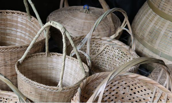 《春归燕》中糯米婆手提春篮出门。春篮也叫“花篮”、“花篓”、“春篓”。大的有二层,画花鸟,打桐油。小的仅一层,叫篓仔。都有盖。平时作客,亲戚来往,便提这种春篮。《珍珠衫》的薛婆手提春篓。《绛玉掼》的绛玉提小巧玲珑的篓仔,由于花篮隐蔽,可以藏东西,故百姓把送礼行贿戏称“掼花篮”。 吊篮的纹理较疏,留有许多规则形孔隙,可以通风,盛东西吊在屋梁。在未见冰箱的年月,吊篮放鱼肉,咸酸橱放杂咸。