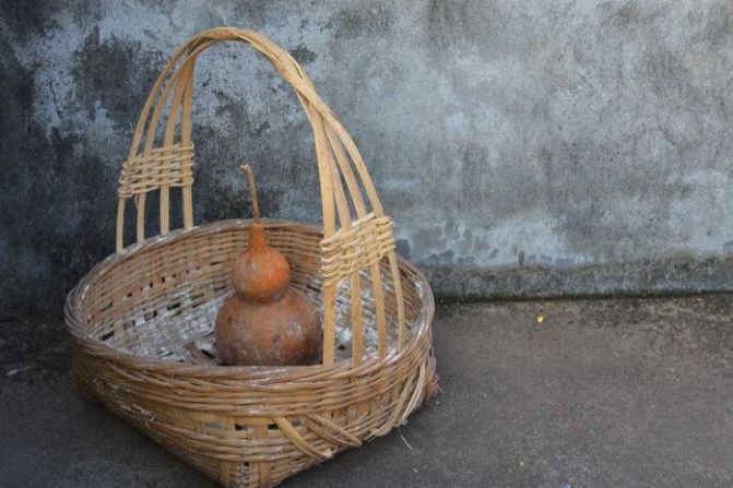 提示:点击上方"潮商"关注我们 《金龙银凤》中李银凤挎竹篮卖花生。这种竹篮敞口,无盖,呈碗形,有弓形柄,与钩篮差不多。
