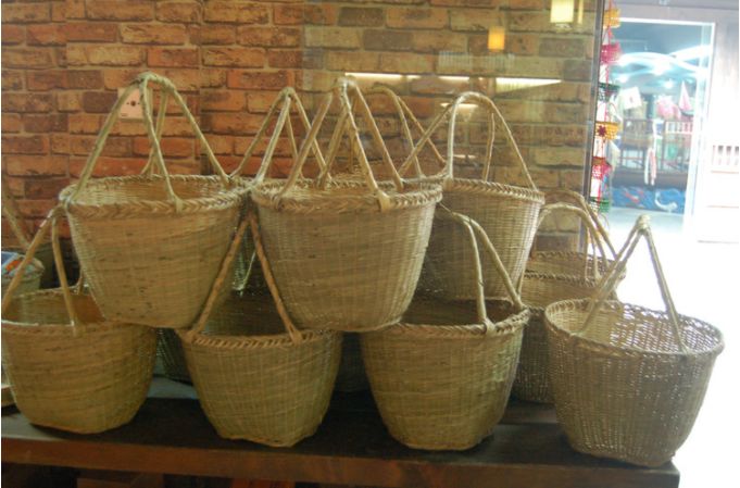 《风雨三迁》中钱骨背市篮拿竹笠。过去老农民上圩,普遍背市篮。市篮全用篾青编制,较深,不画花,打桐油,不透气,口略收而有盖,盛的东西较多。当年先辈大多背市篮过番。