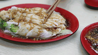 肠粉 steamed vermicelli roll 一盘热气腾 腾的肠粉白色的粿条好似一张薄纱包裹着各式食物——有虾仁的、有猪或牛肉末的、青菜、蛋花......真是好吃得不要不要的~
