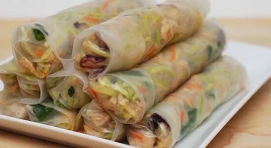 春饼 Spring-pancake 原是立春日的食品,现代潮汕春饼的用料和制法:将面料制成的薄饼皮披开, 放入用鱼露、味精、胡椒粉、麻油、猪油搅拌均匀的绿豆瓣,猪肉,鲜虾肉,香 茹,虾米和蒜茸,包成卷状,用稀面糊粘紧接合处,放入约180°C的油锅炸至呈 金黄色。其特点是:外皮酥脆,馅料浓香。