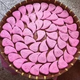 红桃粿 Peach-shaped Kueh 红桃粿通常也是被称作饭粿。一般在像春节这样重要的节日等,人们会制作红桃粿来供奉神明。
