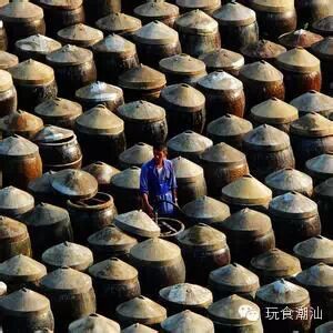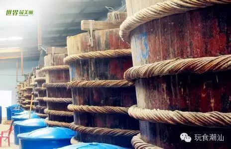 汕头鱼露厂是潮汕的老字号,由创建于1912年的成兴、源丰、千丰等多家鱼露厂于1956年进行了公私合营组建成的。公司位于汕头市光华路55号,小时候就去参观过,不过对于小时不喜欢吃鱼的我,当时惊讶于它的制作方式,更受不了它的味道!目前,它的生产规模及销售量特别是出口量是全国同行业最大的。 1、盐腌:一般在渔场就地加部分盐,趁鲜腌渍; 2、发酵:通常以自然发酵为主,将盐腌后的鱼虾加盐腌渍,期间要进行多次翻拌使鱼逐渐在酶的作用下分解出咸汁; 3、成熟:分解完毕后,移入大缸中进行露晒; 4、抽滤:从晒缸中抽出,即得原油。 5、配制:像调配酒一样,取不同年份清液按比例进行混合调配。