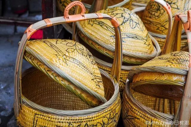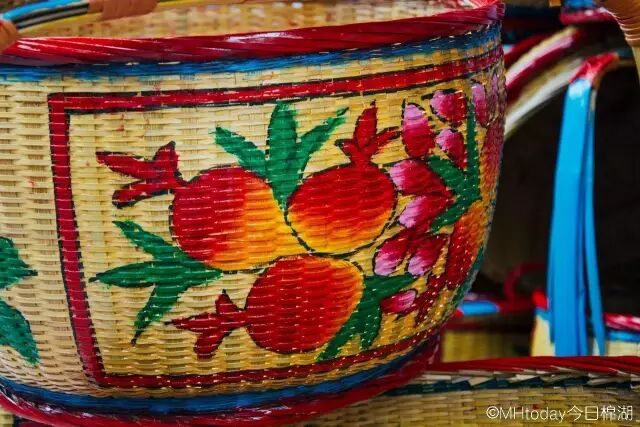在潮汕,花篮是特指盛装人情往来的礼物专用器具,一般是用竹篾编织而成的,上面描画有吉祥字样及图案。在以前,潮汕姿娘上街就会带个花篮,和现在的女孩子上街带包包一样。由于花篮需要精心编织并且需要画工描上各种喜庆的字画图案,价值不菲,因此,家境较好的小姐就有大小不一、花款不同的各种花篮,但是家境一般的人家就只能带着个相对粗糙白坯、俗称市篮的竹篮