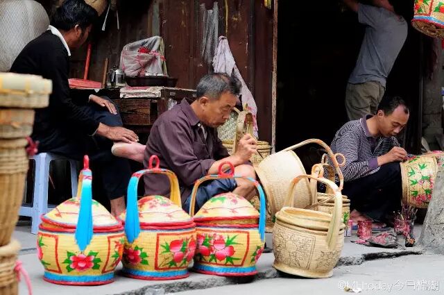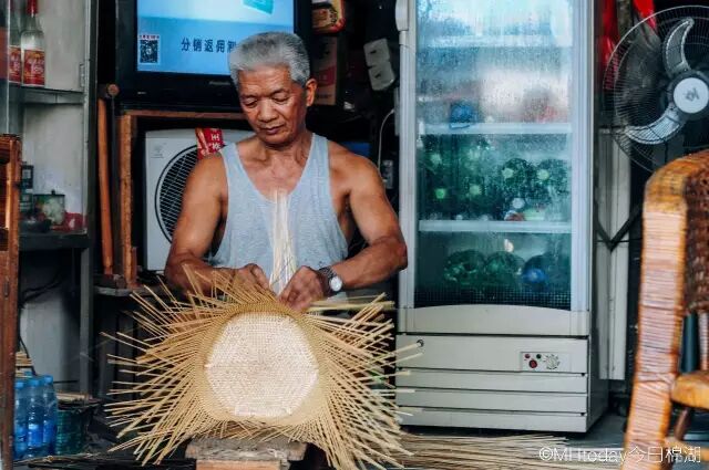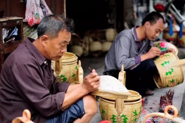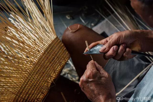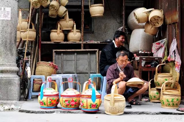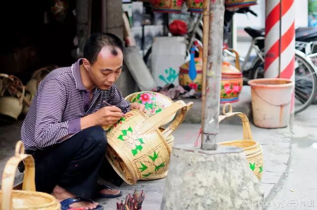 我们在凤江的侯大叔家中,看到大叔正在认真地编织竹篮。