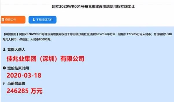 3月18日,佳兆业集团以24.6亿元成功竞得东莞市厚街商住地块 土储,被视为房企盈利及稳定增长的“压舱石”。