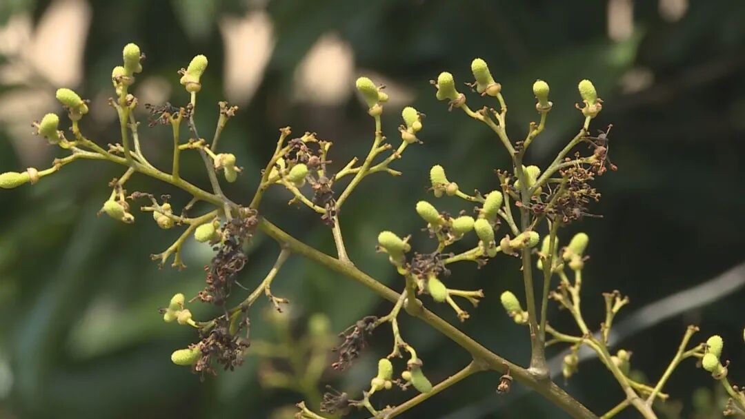 在雷岭镇苦埔场荔枝园,许多荔枝树已经开始掉花,枝头挂满了嫩绿色的幼果,一幅丰收的景象。