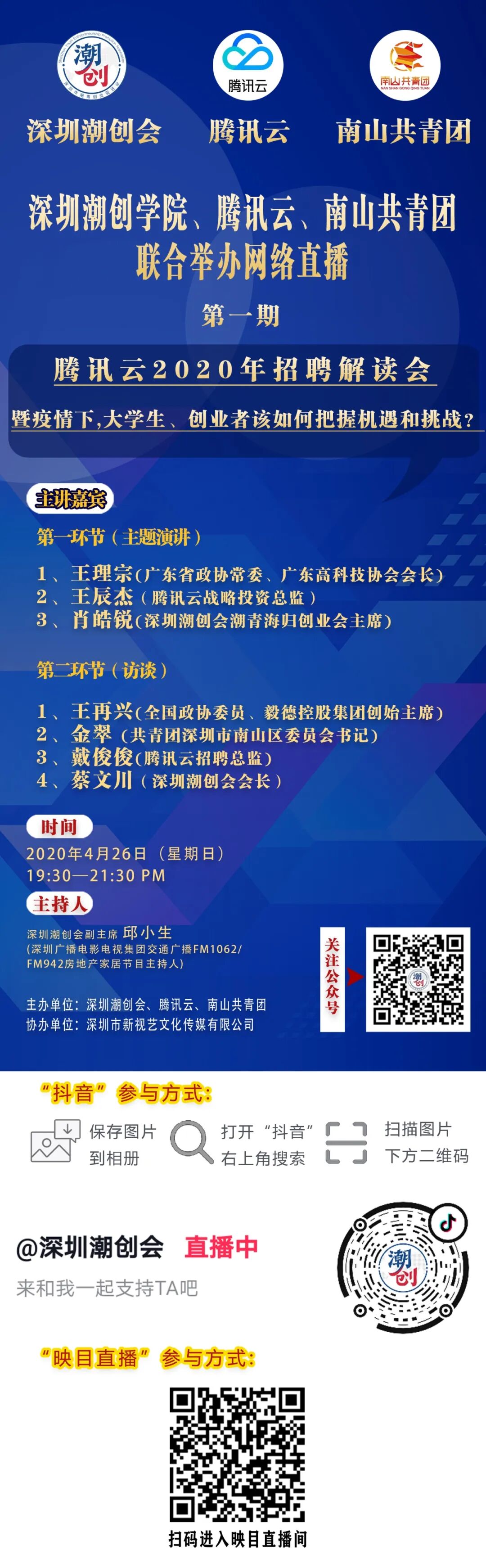 扫码进入映目直播间 关注:26日晚7点半,腾讯云2020年招聘解读会暨疫情下:大学生、创业者该如何把握机会和挑战