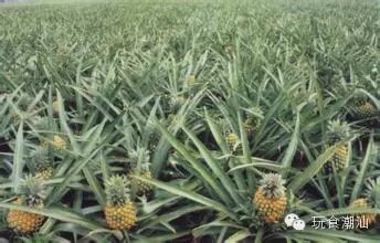 潮汕地区的惠来、潮州的登塘都有较大面积的种植。《潮汕特产歌》唱道:“葵潭出名大菠萝,苏南出名好卤鹅,海山出名大虾脯,溪口出名甜杨桃。”葵潭镇位于惠来县,这里山地资源丰富,适宜的土壤,充足的阳光、水分,是菠萝种植的理想地域。每年七八月是菠萝收获高峰期,总能见到一车车满载着菠萝的货车驶向惠城、流沙、汕头及福建、海南、浙江等省内外水果批发市场。全镇菠萝种植面积2.7万亩,年产量近7万吨,产值1.2亿元,这里的主要品种是“圆墩菠萝”。但近年来,潮汕总体的种植面积有所下降。