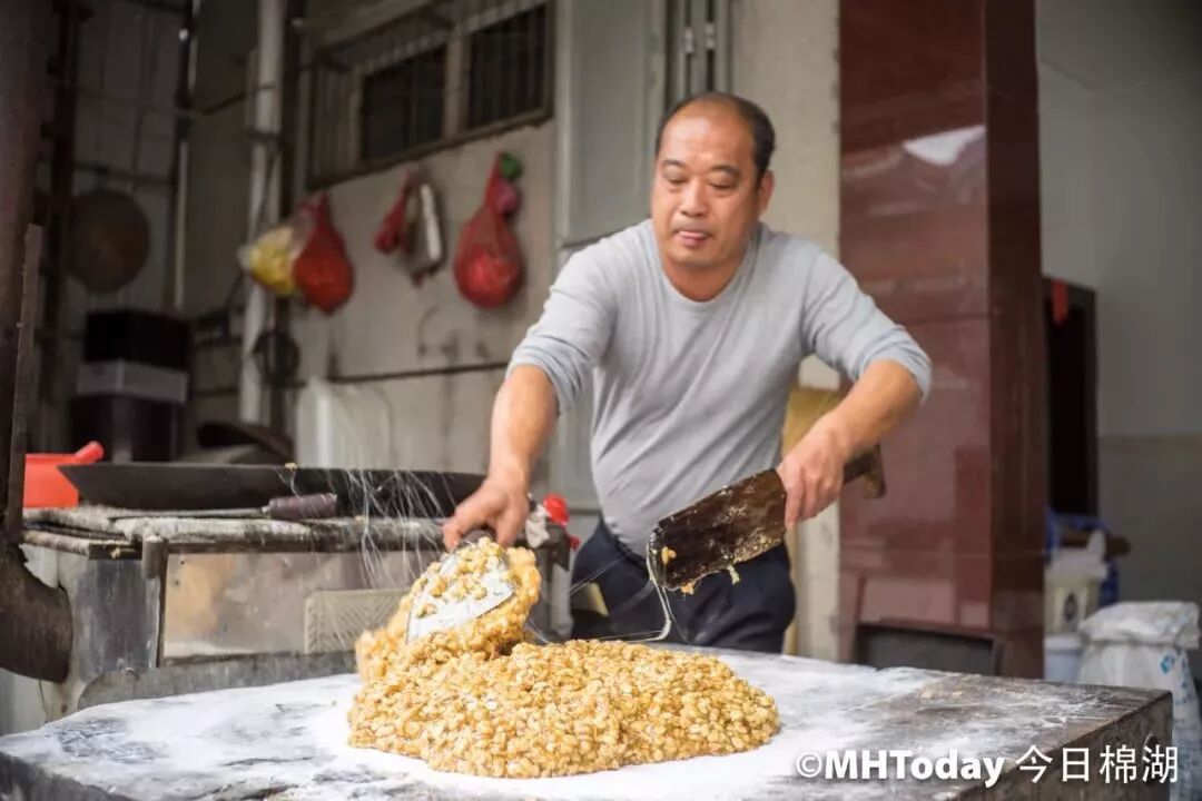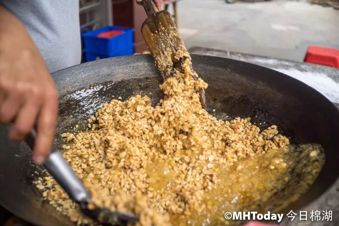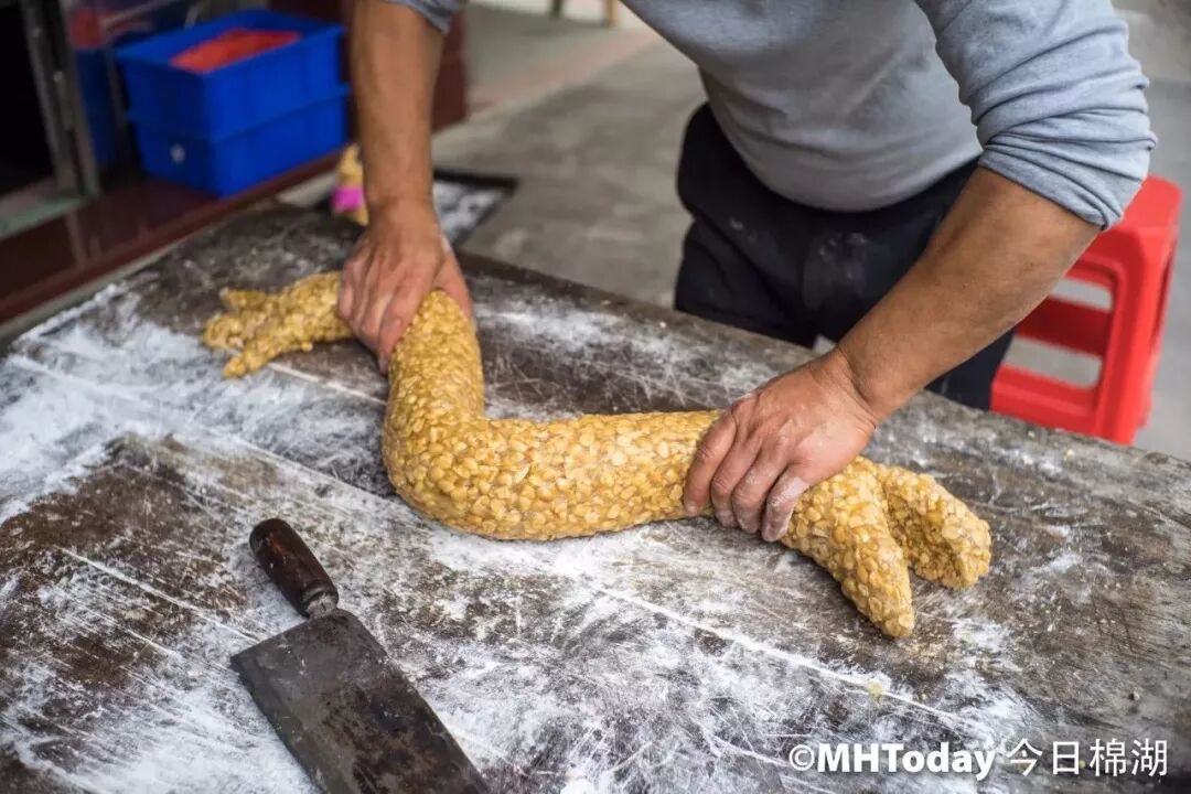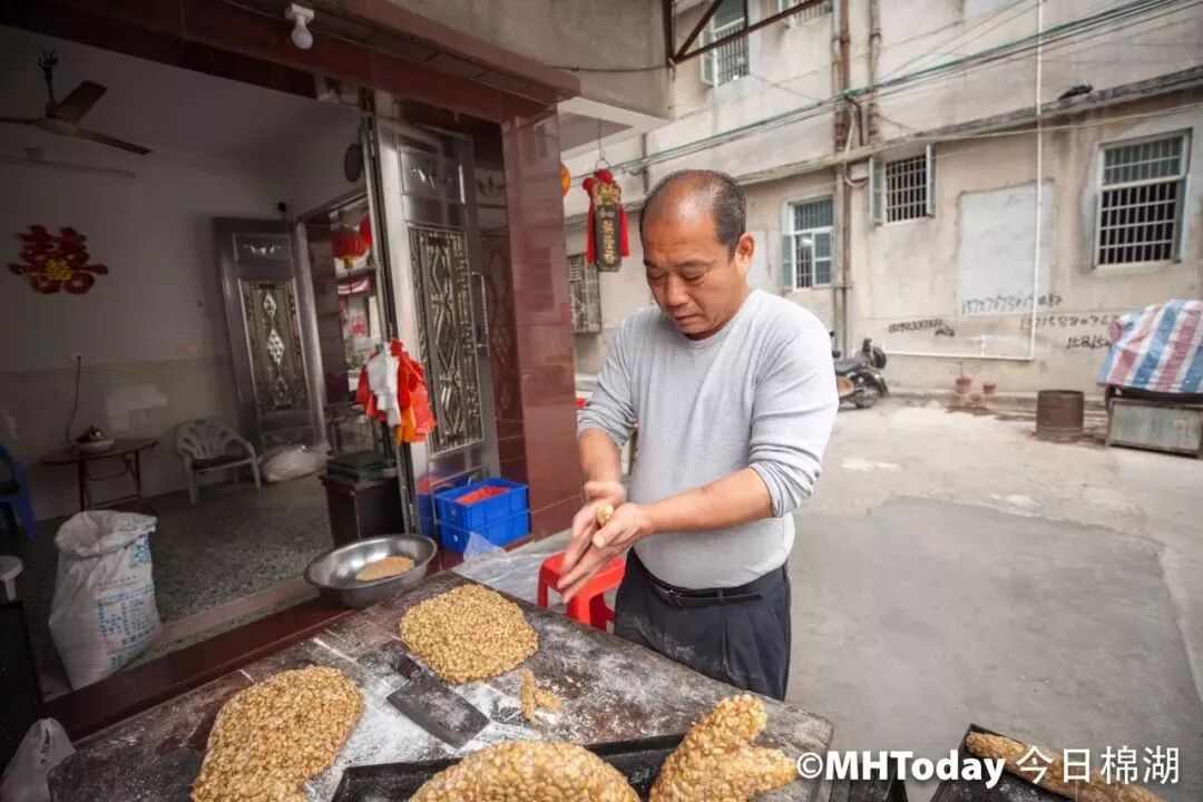 穿过棉湖的街巷,我们来到挂有棉湖洪心合招牌的糖铺,洪叔正在制作糖三牲,据悉,这糖三牲是揭阳一家寺庙专门来此订做的。一边忙着制作糖三牲的洪叔一边向我们介绍,这糖三牲在他们小的时候就经常有看到,有些寺庙要准备斋的祭品,所以就只能到糖铺订制糖做的三牲,但现在已经是很少看到了,只有糖狮一直流传下来。