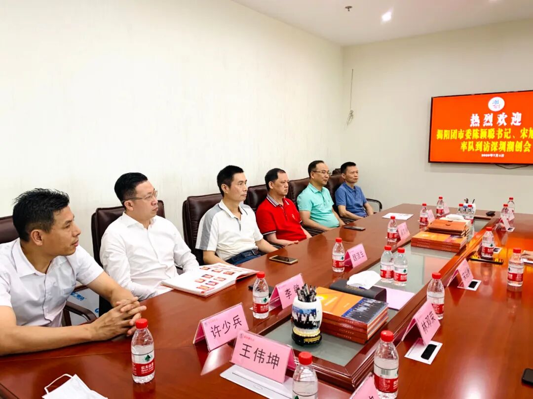 2020年7月4日下午,共青团揭阳市委员会副书记陈颖聪,广东省人大代表、揭阳市大学生发展基金会宋旭彬理事长一行到访深圳潮创会,受到深圳市政协委员、深圳潮创会会长、不得了投控股集团董事长蔡文川等潮创会成员的热烈欢迎!