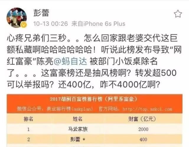 世界首富要换? 2018年2月,阿里巴巴与蚂蚁金服联合宣布,根据2014年双方签署的战略协议,并经阿里巴巴董事会批准,阿里巴巴通过一家中国子公司入股并获得蚂蚁金服33%的股权。 尽管蚂蚁金服官方并未给出明确的上市时间表,但阿里巴巴通过子公司入股获得蚂蚁金服33%的股权,以及本轮融资,均被外界认为是蚂蚁金服在为上市做铺垫。 对于蚂蚁金服融资或者上市,吃瓜群众更热衷关注——将诞生多少阿里系富豪?世界首富是不是要换?2017年10月公布的“2017胡润百富榜”,阿里巴巴系有高达43人上榜,该榜的上榜门槛是20亿元。但这也遭到了包括彭蕾在内的蚂蚁高管的吐槽。