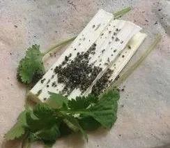 从汕头闹市中心的商业综合体苏宁广场街边匆匆走过,不远处却忽然传来一声很久很久未听过、但却一下子就把我记忆的开关打开的叫卖声:糖葱薄饼哦,糖葱薄饼…… 于是,急匆匆应声寻去,但见一位农村衣着的大嫂,推着一辆老式自行车载着两只筐头(短矮的竹筐)在叫卖。我毫不犹豫地要了两条:自己吃一条,一条带回家给我已经年已米寿的老父亲,他也喜欢这一口,虽然吃起来已经不容易了。 趁着大嫂忙活着包糖葱薄饼的时候,我仔细观察了一下她的“装备”:自行车后座一边的筐头上面是一只浅沿的箶囝(竹编笸箩),薄饼和糖葱放在竹筐里,糖葱用一只铁皮饼干盒装着,包糖葱薄饼的流程是在箶上操作的。糖葱是糖制品,由于有很多像葱管的空儿,所以叫糖葱。糖葱本身松而脆;出售时每节切成大约两三寸长,上面撒上一些芝麻,还放上几根芫荽(香菜):甜又香。就这松而脆的口感、甜又香的味道,小时候只要吃过一次两次,就一辈子记住了。