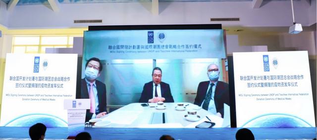 2020年9月23日,国际潮团总会通过线上签署与联合国开发计划署的合作备忘录,双方正式建立战略合作伙伴关系。因受全球疫情影响,签约仪式通过网络,连线全球30多个国家和地区共同参与直播见证。活动由联合国开发计划署可持续金融传播公益顾问李红梅主持。 签约仪式上,联合国开发计划署曼谷区域中心负责人Jaco Cilliers先生代表UNDP和联合国对潮团捐赠100万个口罩表示感谢,他表示全球疫情不仅仅是通过政府公共部门的力量能够解决的,需要企业社团和社会各界的广泛参与。此次潮团捐赠,是全球商业的机构与联合国开发计划署共同合作共同抗疫的案例,对全球将产生深远影响。今日是联合国开发计划署与国际潮团总会全面合作的第一步,他希望未来更多的潮团力量参与全球可持续发展的议程,开展深入合作。 联合国开发计划署可持续金融负责人李楠女士在致辞中提到了在第75届联合国大会上,习主席提出的政策主张和对联合国的支持与承诺。她表示,国际潮团总会对于联合国开发计划署全球抗疫工作的支持充分体现了习主席的思想和行动纲领。国际潮团遍布全球的社团网络,有商业、投资的力量,科技的力量,联合国开发计划署与国际潮团总会将深入探讨未来合作发展,汇集双方的智慧、 技术、资本和优势推动社会向创新、协调、绿色、开放、共享的模式发展。 国际潮团总会主席洪江游表示,国际潮团总会与联合国开发计划署签订战略合作伙伴,是国际潮团总会开启的又一新里程碑,同时也贯彻落实国际潮团总会的宗旨和理念,特别是第21届潮团年会将于明年在海南隆重举行,恰逢国家在海南设立自由贸易港的好时机,双方可探讨和组织相关的峰会或论坛,促进交流,共同提高可持续发展目标。这将成为向全球宣传推介海南,助力海南进一步开放发展及加强国际交流合作的重要平台。同时,还号召总会各会员积极行动起来,支持总会后续与联合国的各项活动。 国际潮团总会执行主席陈幼南博士在致辞中表示,国际潮团总会在历届主席们的领导下其宗旨精神不断发扬光大,今天全世界的潮人乡亲及各界人士共同见证了国际潮团总会与联合国开发计划署战略合作签约,体现了一个国际组织的使命和担当,值得纪念和载入国际潮团总会史册。另外,还向大家介绍国际潮团总会属下四个板块:潮学、潮商、潮博、潮青,各板块组织各自的人群组成和现状。无论哪个板块在总会的领导下,总施有跟多交叉协同发展。今天总会与联合国开发计划署建立战略合作伙伴关系,是良好的开端,希望接下来有更多的合作。 此次活动总协调人、联合国开发计划署可持续金融顾问李红梅表示,这是国际潮团总会和联合国开发计划署合作的新开端,期待未来双方在可持续发展投资,可持续发展慈善领域,包括青年创新、青年领导力、青年创业、未来发展等展开深入广泛的合作。可以通过举办可持续发展目标相关的论坛、峰会、网络研讨会、实地项目考察等形式,推动科研、创新和专业技术的推广,促进可持续发展目标的实现。 在各方的见证下,国际潮团总会主席洪江游、执行主席陈幼南博士代表国际潮团总会签署了与联合国开发计划署的合作备忘录。 今年是联合国成立75周年,也是可持续发展目标“行动十年”的第一年。双方将在可持续发展相关领域资源共享,共同致力于提高公众对于发展问题重要性的意识,推动人类的可持续发展目标。 心系全球 共同抗疫 百万口罩捐赠助力全球抗疫 活动现场还举行了捐赠抗疫物资发车仪式。 据悉,3月15日国际潮团总会与第21届国际潮团联谊年会主办单位海南省潮商经济促进会共同发出倡议,号召各地潮团、潮人侨领、会员单位等爱心人士共同行动,捐资捐物,为全球潮籍乡亲齐抗疫伸出援助之手,共度难关。并于3月21日成立“第21届国际潮团联谊年会筹委会抗疫服务志愿团”,为海内外潮团提供抗疫信息和咨询服务。经过半个多月的调配,抗疫服务志愿团为全球潮籍乡亲29个国家和地区送去抗疫防护物资,以实际行动彰显潮团浓厚的家国情怀和高度的社会责任。 在保证全球各地潮籍乡亲抗疫物资充足的情况下,国际潮团总会与第21届年会筹委会继续为全球抗疫工作尽一份绵薄之力。此次,国际潮团总会与第21届年会筹委会发扬大爱精神,捐赠100万只口罩交由联合国开发计划署并根据各地疫情调配给有需要的国家,助力全球抗疫工作。 据了解,本次符合国际捐赠标准的口罩是海南首批“琼货”,也是由海南首条口罩生产线建立企业——康芝药业生产。 香港签约仪式现场 潮商见证 潮青见证 出席嘉宾名单: 联合国开发计划署代表:联合国开发计划署曼谷区域中心负责人Jaco Cilliers,联合国开发计划署可持续金融负责人李楠,联合国开发计划署可持续金融首席运营官 Artak Melkonyan,联合国开发计划署可持续金融战略顾问冯晓哲先生、前比尔盖茨基金会中国办副主任耿明,联合国开发计划署可持续金融传播公益顾问李红梅。 海南政府代表: 海南省工信厅二级巡视员王秀好、海南省工商业联合会二级巡视员冯锦华、海口国家高新区党工委副书记郭志伟。 国际潮团总会代表:国际潮团总会主席、第21届国际潮团联谊年会筹委会主席洪江游;执行主席陈幼南(香港);执行副主席林少毅(加拿大)、曾国奎(印尼);常务理事陈振彬(香港)、黄赐兴(马来西亚)、曾建