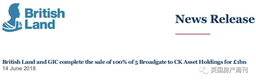 此次长江实业10亿镑的出价也符合British Land和GIC在今年3月31日对大厦进行的估值。
