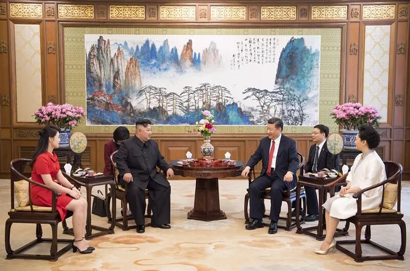习近平在钓鱼台国宾馆会见朝鲜劳动党委员长、国务委员会委员长金正恩。