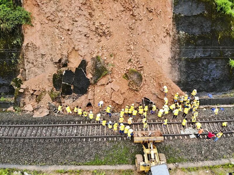 受连续暴雨影响,皖赣铁路江西景德镇段发生山体滑坡、塌方。目前抢险工作仍在进行中。
