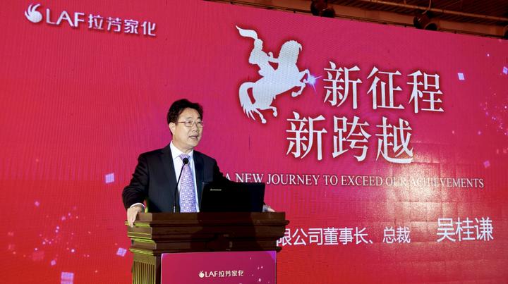 2017年全国经销商年会拉芳董事长吴桂谦在会上发表讲话介绍拉芳企业发展思路 (记者/魏炯才)随着制造强国战略全面推进,“培育精益求精的工匠精神” 被写入政府工作报告。在全社会大力弘扬工匠精神成为国家政策和全民共识的时代背景下。“一家人思想、一体化管理、一盘棋思路”,独树一帜的拉芳企业20年来,倡导敬业、厚植创新的工匠文化,用诚信推动品牌发展,追求民族品牌 “爱生活、爱拉芳” 的广告语绚丽了一个时代。凭借二十年的坚守和不忘初心的执着追求,阔步走向“百年企业世界品牌”的新征程。
