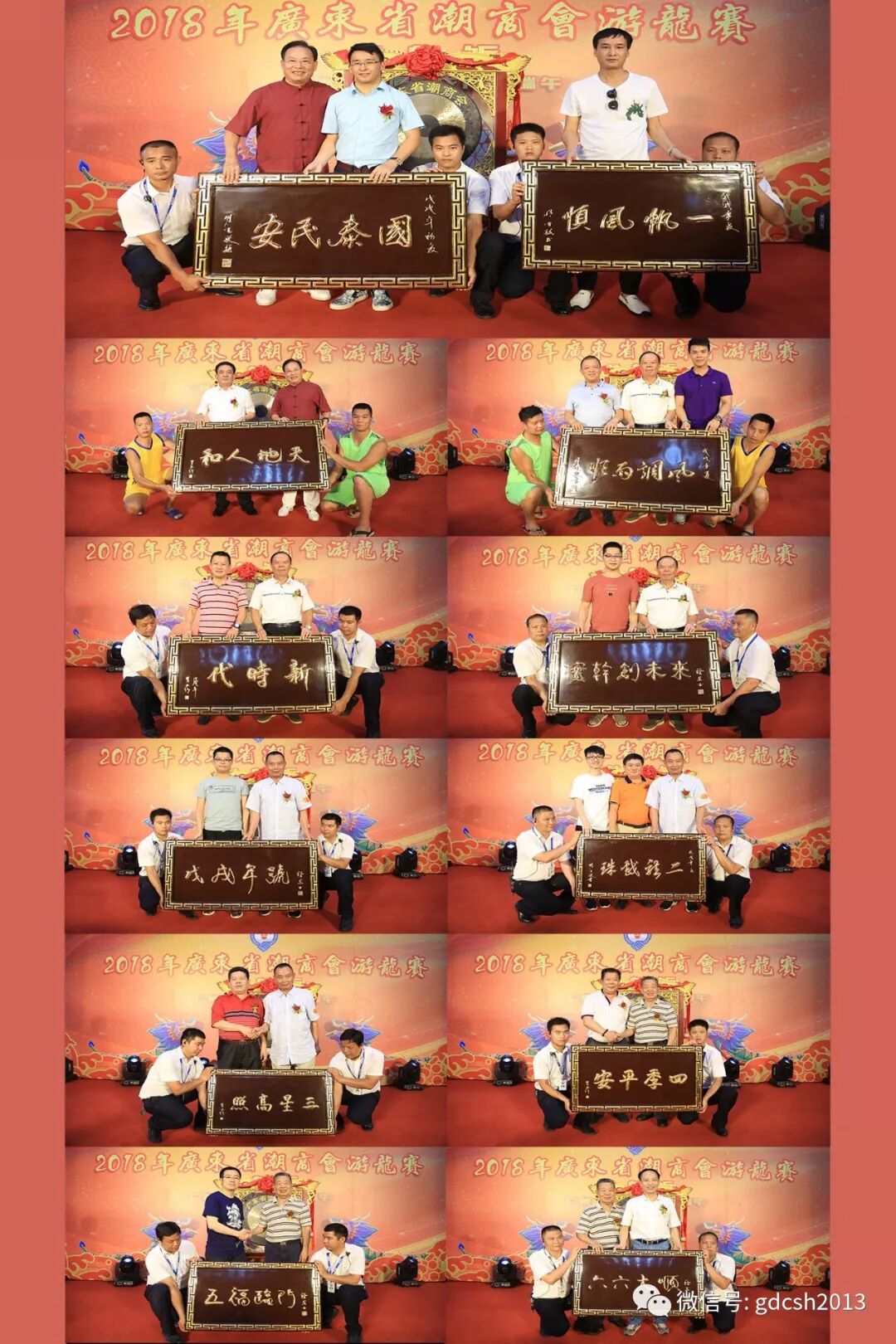 广东省潮商会新塘纺织商会龙舟队 作为一种民俗传统比赛,龙舟赛既彰显出浓厚的历史底蕴,也迸发出强烈的民众吸引力,更体现出我国传统的悠久历史文化继承性和人们的集体主义精神,是一项集体育、文娱、健身、竞赛和审美教育于一身的运动。参加活动的人员在统一指挥下亲身体验划龙舟的乐趣,尽情享受划龙舟这项运动凝心聚力、砥砺前行的激情。 本次龙舟赛还特别制作了“龙舟镖”,邀请广东省委原副书记蔡东士先生、中国佛教协会副会长明生大和尚以及广东省潮商会高级顾问罗林竹先生题字,邀请国家级潮州木雕传承人辜柳希大师执刀,分别有:国泰民安、风调雨顺、天地人和、新时代、实干创未来、戊戌年号、一帆风顺、二龙戏珠、三星高照、四季平安、五福临门、六六大顺等12块龙舟镖,在本次游龙赛登台亮相。