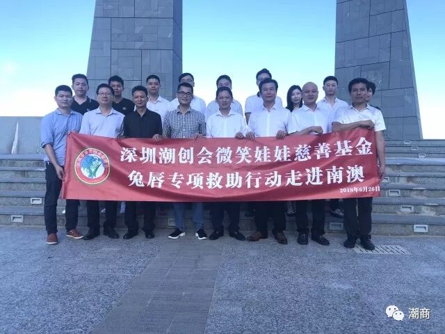 提示:点击上方"潮商"关注我们 6月26日下午,深圳潮创会微笑娃娃慈善基金兔唇专项救助行动走进南澳。深圳市政协委员、深圳潮创会创会会长、微笑娃娃慈善基金会会长、不得了控股集团董事长蔡文川及多位潮创会成员来到美丽的南澳岛,受到南澳县领导的热情接待。