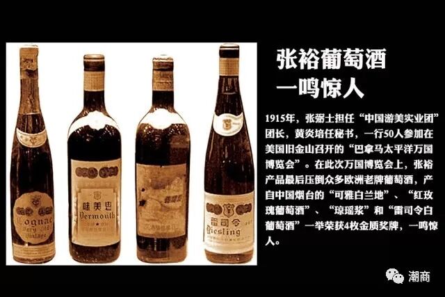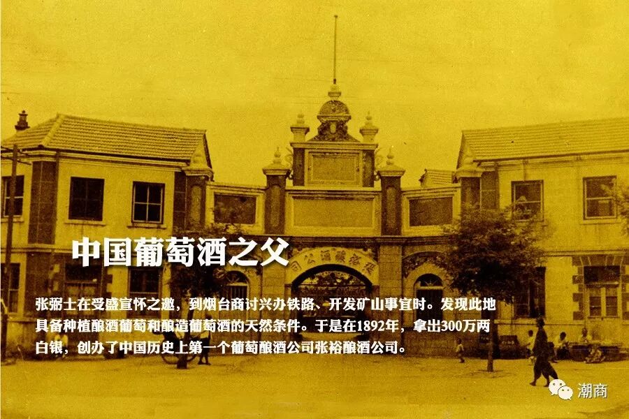 1890年,张弼士任巴城商务领事时,有一次参加法国领事举办的酒宴。当他听到法国领事感叹“这酒如果用烟台所产之葡萄酿造,质量也毫不逊色”,“曾听法国官兵议论,瓜分中国领土时,法国要力争山东,好在烟台设厂酿酒”之后,大为震惊,遂产生了在山东烟台建葡萄酒厂的念头。 1891年,张弼士应督办铁路大臣盛宣怀之邀,到烟台商讨兴办铁路、开发矿山事宜。张弼士借此机会对烟台进行了考察,了解到此地靠山面海,气候湿润,土质肥美,确是种植葡萄的好地方,当即决定投资设厂。1892年,张裕葡萄酿酒公司在烟台建立。1894年,张弼士投资300万两白银,在烟台开辟两座占地千亩的荒山,栽植从欧洲引进的120多个优质葡萄品种;建造闻名中外的地下大酒窖,重金聘请欧洲一流酿酒师,建立了我国最早采用现代科学技术酿造葡萄酒的大企业。 巴拿马万国博览会期间,中国政府组织中国商业报聘团赴美,张弼士任团长,黄炎培任秘书。图为张弼士与团员们合影(前排右起第四人为张弼士) 经过多年辛勤耕耘,“张裕葡萄酿酒公司”终于获得了巨大成功。1915年,在美国旧金山举行巴拿马国际商品赛会(即世博会),张裕产的4种葡萄酒(可雅白兰地、红葡萄酒、味美思和雷司令)一举夺得了一个金奖、三个优等奖(如上图)。这是中华民族的产品在世界上获得的第一块金牌。1912年,孙中山先生为张裕葡萄酿酒公司题词“品重醴泉”,以示嘉勉。 张弼士创办张裕酿酒公司的动机,看似源于一个偶然听到的故事,实为他爱国情怀之杰作。 红顶商人乐善好施受敬仰 .在张弼士的财富史上,政治是两个无法剥离的文字。这位在面见慈禧太后时都享有免跪特权的传奇商人,在他大半辈子的经商生涯中,也一直游离于政治的边缘,成为红极一时的“红顶商人”。 张裕公司曾得到清朝大臣李鸿章关照,广东大埔县张弼士故居的“光禄第”三个字由李鸿章书写 1892年,张弼士经清政府驻英公使龚照瑗的举荐,被任命为槟榔屿首任领事,从此,走上了亦官亦商的道路。1894年,张弼士升任新加坡总领事,在任期间,组织中华总商会,多方维护华侨利益。1897年,参与筹办中国通商银行,出任该行总董。嗣后,历任粤汉铁路、广东佛山铁路总办,太仆寺正卿,商务大臣兼槟榔屿管学大臣,兼办闽广农工路矿事宜,督办铁路大臣等职。 张弼士投资兴办的粤汉铁路 张弼士之所以能享有如此崇高的地位,除了与他对政治一直保持最清醒的认识有关外,也与他热心公益的慈善意识密不可分。 张弼士任海外商务大臣兼槟城管学大臣时,曾捐资8万元创办槟城中学学校,又在新加坡倡办应新学校。他还给香港大学堂捐款10万元。辛亥革命后,他捐助福建民军7万元,又在汕头购置房屋数十所创办“育善堂”,专为当民及嘉应五属学生办福利。晚年还遗言捐助广州中山中学和岭南大学修建校舍。现在中山大学有一座“张弼士楼”即为其后裔遵嘱捐建。 中山大学“张弼士楼”,现为中大社会学与人类学学院 1916年,张弼士为了筹措中美银行资金,不顾年迈体弱,前往南洋四处接洽。当年9月,在印尼巴城病逝,享年76岁。张弼士临终遗言:“死葬家乡。”当他的灵枢自巴城经过新加坡、香港时,英、荷殖民政府都为之下半旗致哀,港督则亲往凭吊;当由汕头溯韩江而上时,两岸群众均摆设牲仪致奠。 资料来源:《梅州日报》、《中华工商时报》、《华人首富》 声明:本文不代表我们的观点,仅供读者参考。文章版权归原作者所有,如有侵权,请联系我们进行删除。 潮 商 ∣ 走遍天下 · 根在潮汕 文化的境界 · 财富的智慧