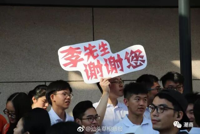 提示:点击上方"潮商"关注我们 今天上午8点多,李嘉诚先生携次子“小超人”李泽楷抵达汕头大学,受到同学们的夹道欢迎,原来是为了赴一个一年一度的约——出席汕头大学毕业典礼! 李嘉诚受到在场汕大师生的夹道欢迎,同学们还为他献上鲜花和创意标语,并亲切地称呼李先生为“诚哥”,让已年届90的李嘉诚倍感高兴。 现场,李嘉诚认真聆听同学们的话语,兴致勃勃地和大家合影留念,场面温馨热烈。 部分图片来源:汕头草根播报 声明:本文不代表我们的观点,仅供读者参考。文章版权归原作者所有,如有侵权,请联系我们进行删除。 潮 商 ∣ 走遍天下 · 根在潮汕 文化的境界 · 财富的智慧