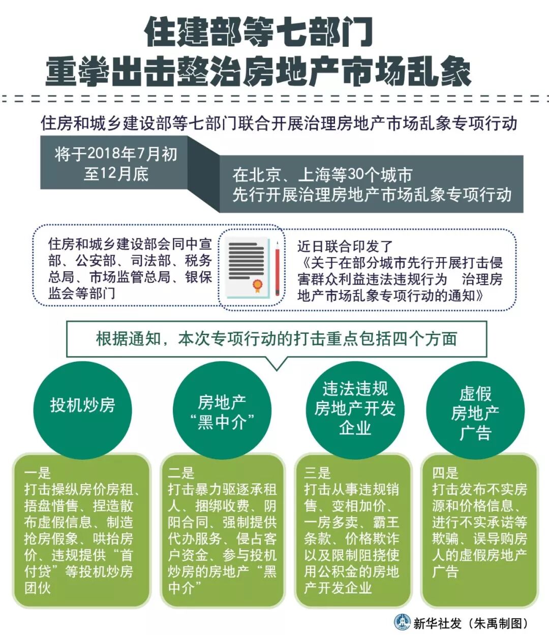 住房和城乡建设部等七部门联合开展治理房地产市场乱象专项行动。