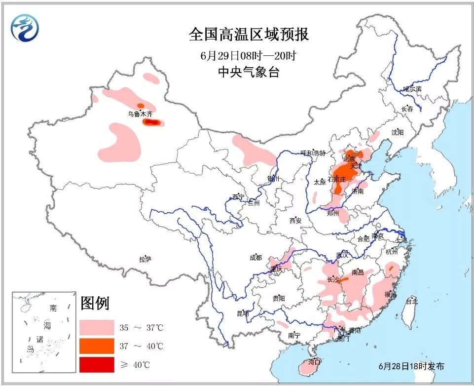 未来两天,我国高温势力仍“坚挺”,华北、江南、华南局地最高气温达37~39℃,对于华北来说,高温将持续至7月初。降水方面,预计6月28日20时至29日20时,苏皖鄂等地有较强降雨。需谨防地质灾害的发生。