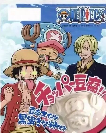 此外,Johnny还跨足到手机上,将自创的男前豆腐店的歌曲变成可以下载的来电铃声和来电歌曲,也算是完成了他小时候的音乐梦想。 从一块豆腐延伸到耳钉、T恤、音乐、手机铃声,完成了产品从单一的功能价值,上升到表达自我,追求时尚的精神体验价值。 这样一来,实现了品牌从低附加值、低关注度到高附加值、高关注度的跃升,开辟了“时尚豆腐”的潮流。 借此拉拢了消费者的心,完成了第二波吸粉。 招式三: 跨界整合“硬”:1+1>2 而且因为超高的人气,男前豆腐吸引了很多品牌与之合作。 例如和超人气动漫《海贼王》共同开发了“乔巴豆腐”:在包装上印有路飞、山治及乔巴的图像,均采用男前豆腐的原创设计,并利用特殊容器,使豆腐上再现乔巴的脸部。