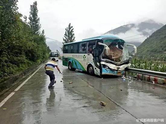 四川一辆从泸沽湖返回成都的客车被山上滑落的巨石砸中,司机罹难前踩刹车挽救整车游客。