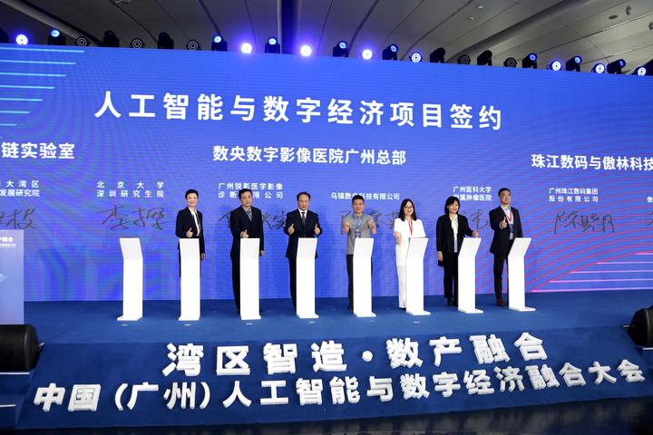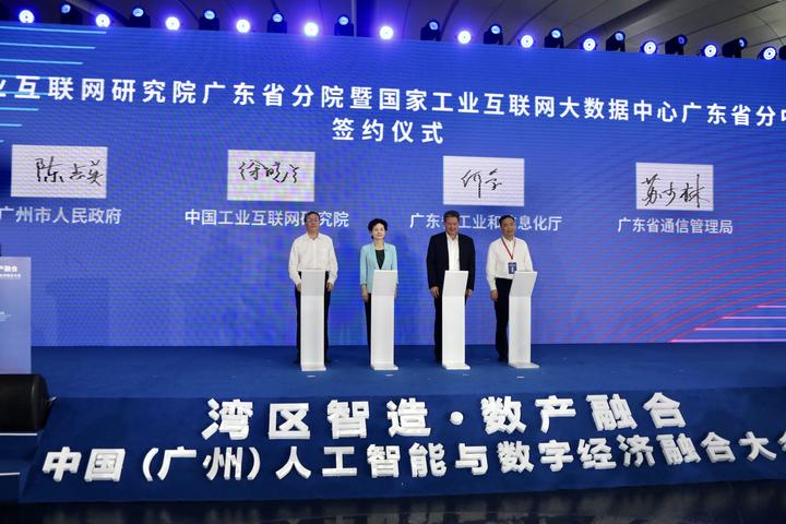 大会,由工信部支持创建的广州市人工智能创新应用先导区隆重揭牌,广州人工智能企业联盟实验室(昇腾)首批应用场景和示范项目、中国工业互联网研究院广东分院暨国家工业大数据广东分工中心、北京大学PETCT百家数字影像医院合作等一批重要项目签约落地。同时,2021年首届中国工业互联网标识应用创新大赛、工业互联网标识解析国家顶级节点(广州)卓越成就发布仪式、2021年度粤港澳大湾区数字经济与现代产业发展企业评奖活动暨《大湾区创新型企业家培育计划》、广州昇腾生态AI技术人才培育计划等多个数字经济领域的重要活动也在本次大会上正式启动。