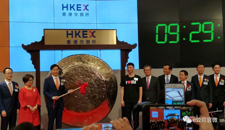 为了迎接小米上市,港交所还特别准备了一个巨大的铜锣,这个铜锣比原先的那个大了将近80%,灯光照耀下反着片片红光,映得雷军也是红光满面。