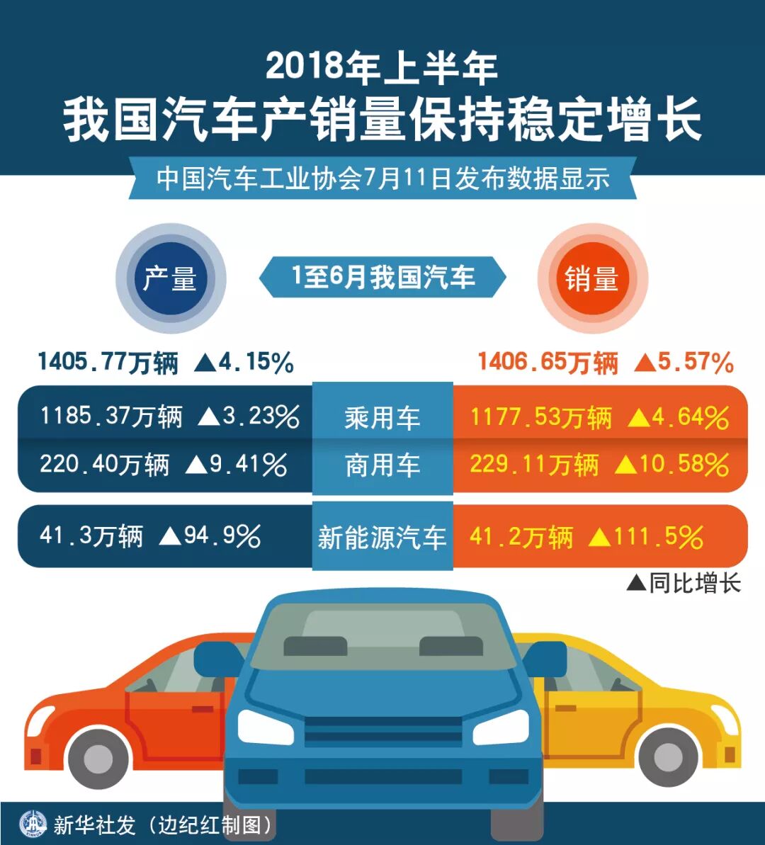 中国汽车工业协会发布数据显示,1至6月我国汽车产销同比增长4.15%和5.57%,上半年汽车产销总体保持稳定增长。