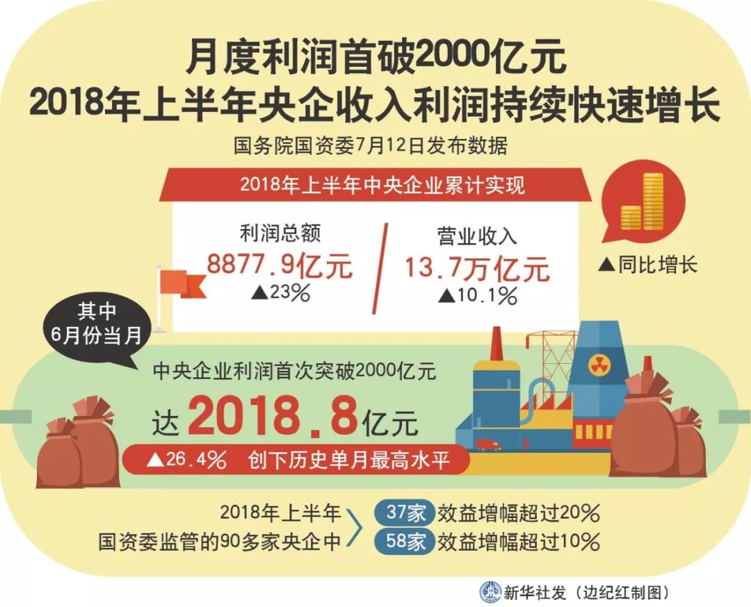 国资委发布数据,今年上半年中央企业累计实现利润总额8877.9亿元,同比增长23%。