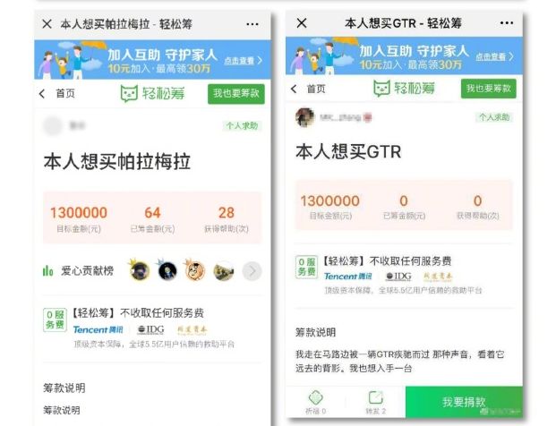 轻松筹平台发布声明称,平台接到大量购买GTR、迈凯轮、帕拉梅拉的恶意筹款项目申请,仅仅是一些人因为“好玩儿”。目前轻松筹已迅速关停项目、冻结资金,并已向公安机关报案。