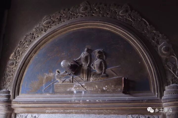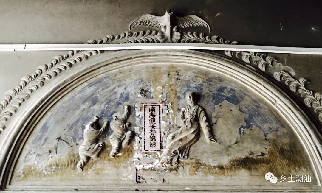 和平鸽保卫和平,观世音保佑平安,天下大同。(陈斯楷摄) 游船贵妇 Tiffany蓝 目前仅在德茂内可以见到的西洋人物灰塑与浮雕。 游船贵妇拎包撑伞门上漂流,可以说是非常大胆。