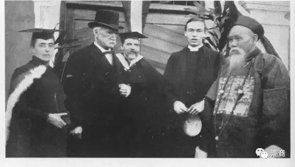 1903年2月,汕头福音医院的建筑物包括一间总院和一间女医院(即现市二医院原址)同时落成,汕头殷商陈雨亭为医院捐了六千银洋。 ![]() 陈雨亭 ![]() 1903年,新建筑物落成时陈雨亭与医院领导合照,汕头大学基督教研究中心提供 1903年来汕的英籍怀敦干医生(Dr.G.Duncan Whgte M.B)用盐水注射医治病人获得成功。最初在400名病人中,有320多人得到痊愈。当时医院已有231张病床。怀敦干医生在汕头工作18年,曾于1904年暂代回国休假的莱爱力,负责医院日常管理工作。1921年他因病回英国休养,1923年春回汕头工作,可惜在途中病情剧变,船抵香港时入院治疗,不幸同年底在香港逝世,遗体运回汕头安葬。