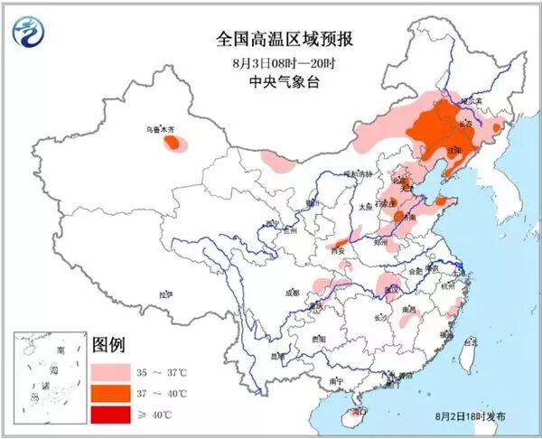 中央气象台继续发布高温黄色预警:预计8月3日白天,内蒙古中东部和西北部、东北地区中南部、华北中东部、黄淮北部、陕西关中地区、湖北东部、四川盆地东部、江西中部、浙江东南部、海南北部、吐鲁番盆地等地最高气温有35~36℃。