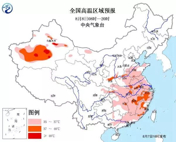 中央气象台继续发布高温黄色预警:预计今天白天,陕西关中地区、河南北部、江淮中部、江南中东部及南疆盆地等地的部分地区最高气温37~39℃,新疆局地可达40℃以上。