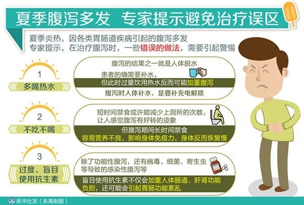 夏季炎热,因各类胃肠道疾病引起的腹泻多发。专家提示,在治疗腹泻时,一些市民往往选择过量饮用热水、盲目使用抗生素等,这其实都是错误的做法,需要引起警惕。