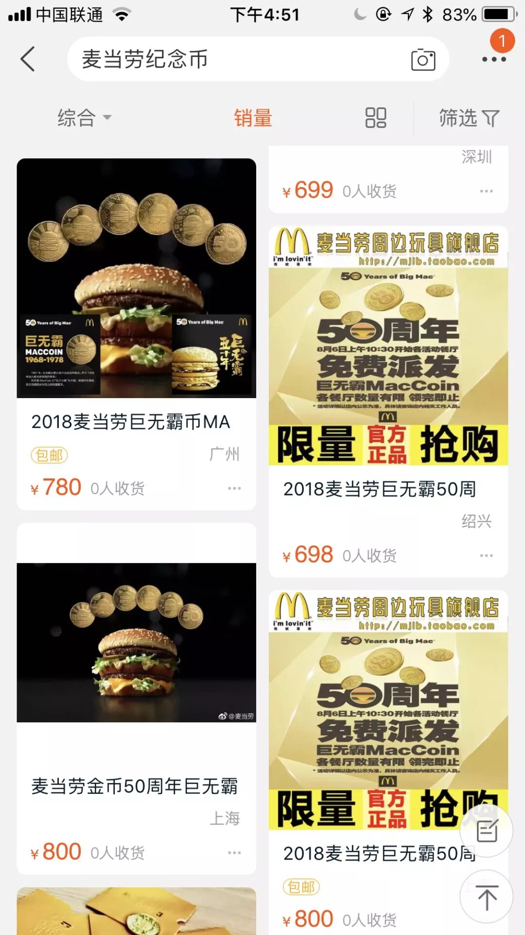 提示:点击上方"潮商"关注我们 8月6日,麦当劳MacCoin币正式上线。现在一枚MacCoin的价格已炒高至800元,而且价格仍在持续上涨之中。 ![]() ![]() 发布巨无霸收藏币MacCoin ![]()