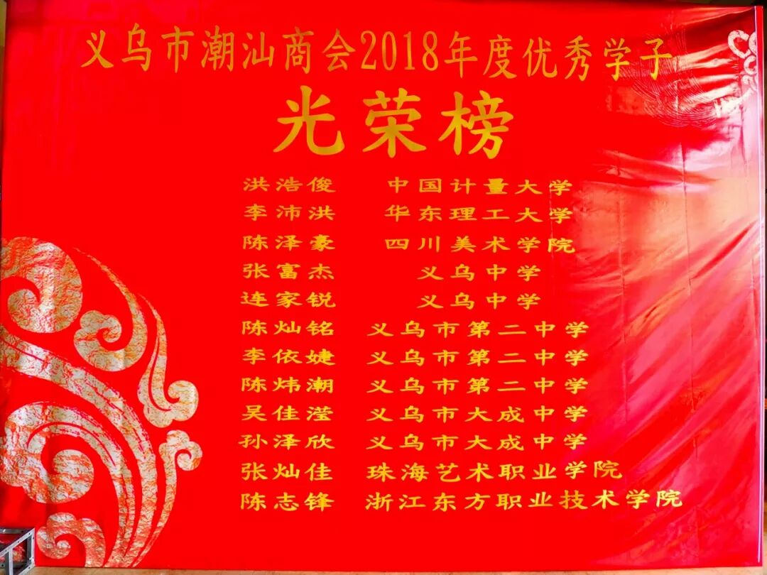 义乌市潮汕商会会员优秀子女奖学金制度设立于2011年,目的是为关心下一代健康成长,鼓励商会会员子女努力学习,弘扬潮人精神,光大潮人门庭,促进在义乌潮籍乡亲人才辈出。在此激励机制下,会员子女分别考进清华大学、北京大学、复旦大学、浙江大学、华南理工大学、华东理工大学、华中科技大学、首都医科大学、安徽大学、郑州大学、南昌大学、南京师范大学、汕头大学等全国著名重点大学,普通大学更是比比皆是,此举得到全体会员和社会的充分肯定,商会将一如既往的做好此项工作,投入更多精力培养下一代。 声明:本文不代表我们的观点,仅供读者参考。文章版权归原作者所有,如有侵权,请联系我们进行删除。 潮 商 ∣ 走遍天下 · 根在潮汕 文化的境界 · 财富的智慧