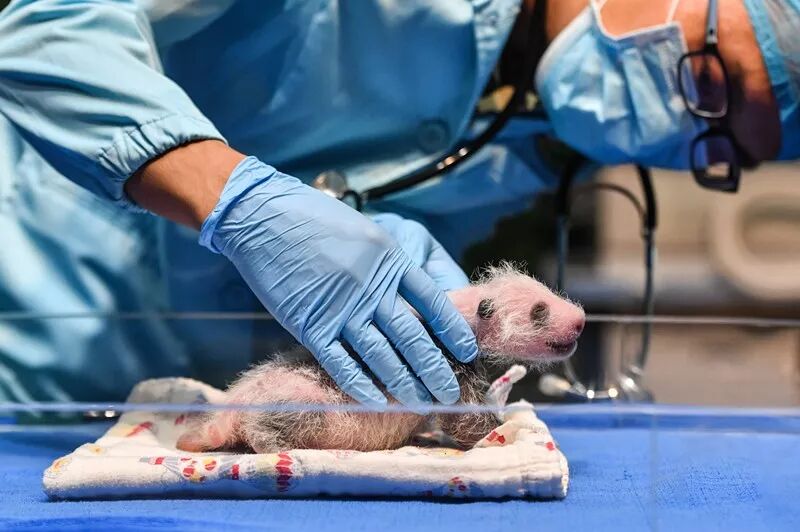 在广州华南大熊猫繁育基地,大熊猫宝宝“婷仔”和“隆仔”一起接受了专家的体检。“婷仔”于今年7月29日刚刚出生,“隆仔”则在8月12日迎来了满月生日。