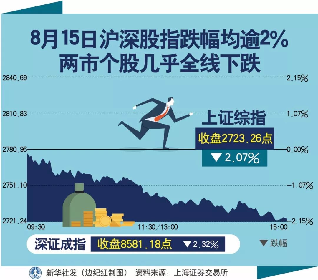 15日,A股市场再次大幅下跌,沪深股指跌幅均逾2%,两市个股几乎全线下跌。