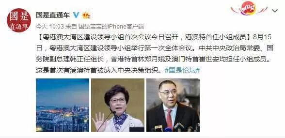 在很长一段时间,粤港澳大湾区都被市场所瞩目。 它庞大的规模体量,可观的发展前景,一度被看作是“全球经济体量最大的湾区”“全球第一湾区”等等。但在长达8年舆论瞩目下,粤港澳大湾区的建设宏图一直停留在规划阶段。 直到昨天,它才迈出决定性的一步。昨天上午十点,中新社旗下的“国事直通车“在其微博发布消息: