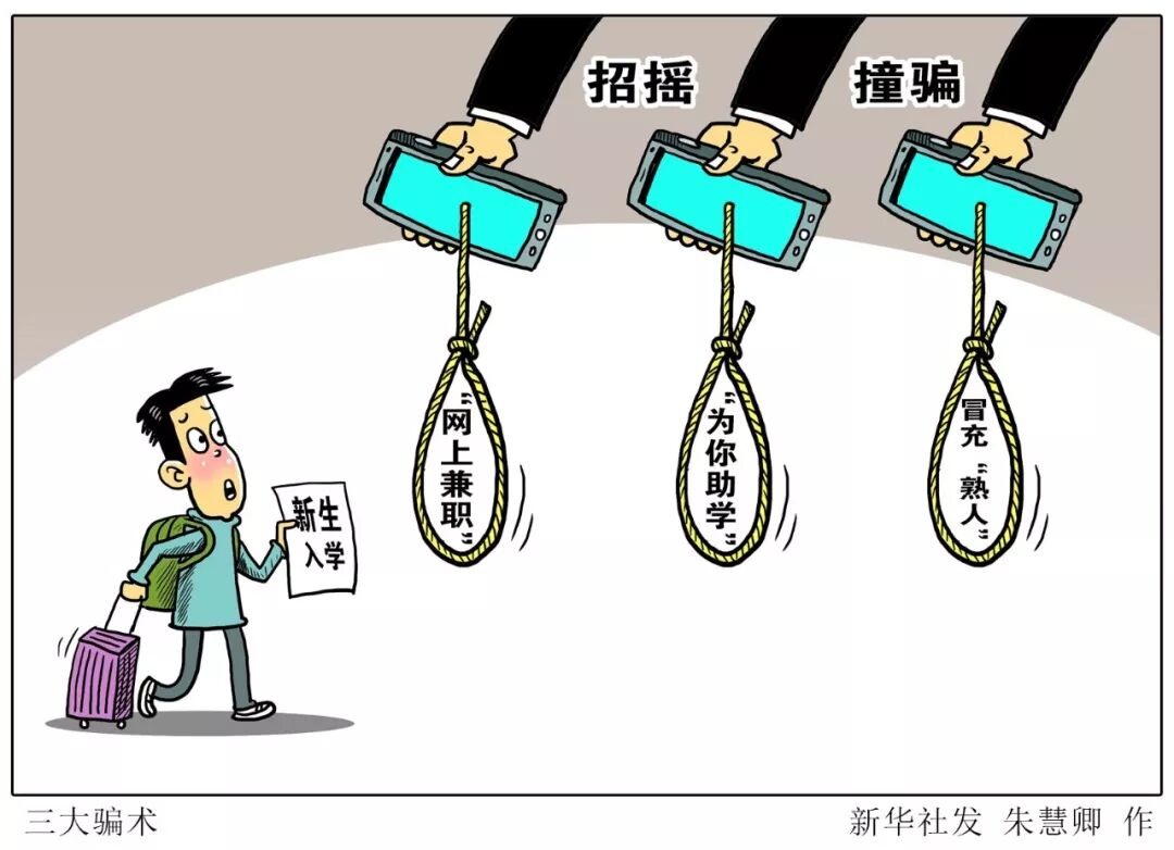 警方提醒,新生入学谨防三大骗术:“网上兼职”“为你助学”和冒充“熟人”。专家提示,新生遇到有关问题要向学校打电话询问,及时加强与父母的沟通,不要武断行事,以免酿成大错。