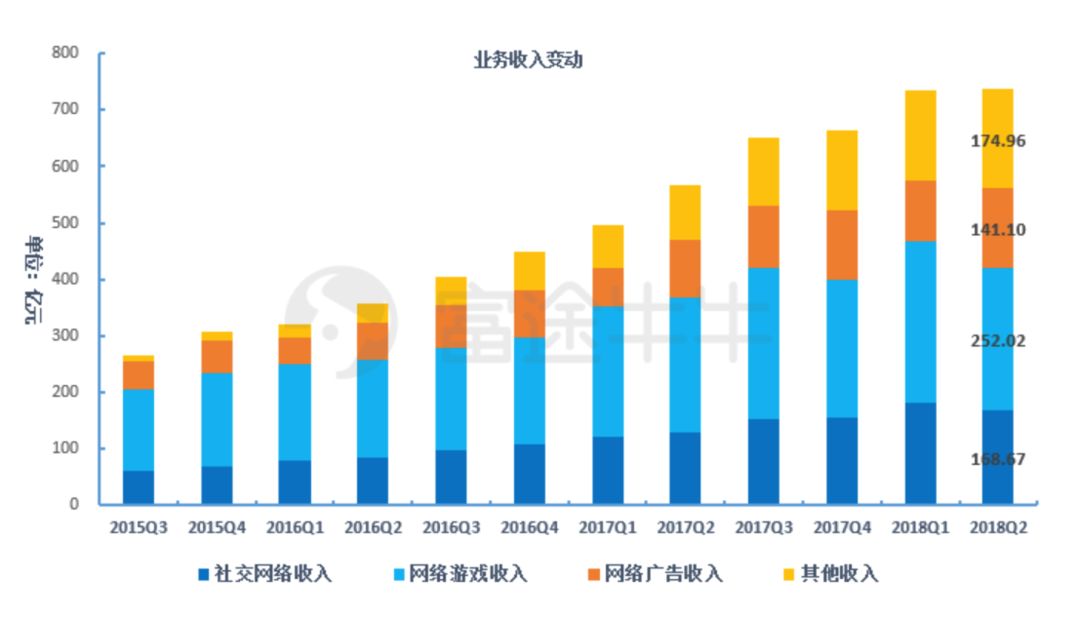 大众总是喜欢盯着短板看,而选择性忽略掉腾讯在其他业务收入的迅猛增长。据腾讯Q2财报显示,支付及云服务收入首次超过了社交网络,排在收入占比的第二位,仅次于网络游戏。其他业务收入同比增长81%,环比增长10%。六月末,腾讯支付业务的月活账户已逾8亿,日均成交同比上升逾40%。