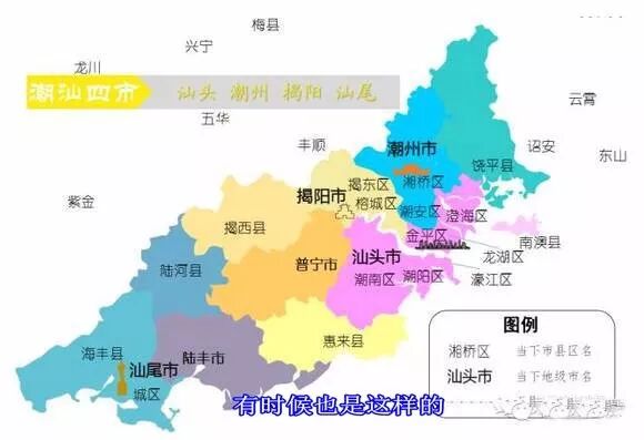 凡事有失必有得(只讨论地盘,不讨论经济得失和心理状态),比如汕尾地区,本来叫做海陆丰,虽然讲的是闽南话,历史上一千多年来都归惠州。新中国成立后的1958年,海陆丰第一次被汕头地区管辖,不过当时汕头专区不但包括潮汕,还有兴宁梅县等地。1983年,海陆丰又重新划给惠州,才5年后,1988年,中央又一纸令下,凭空又冒出个汕尾市来。 海陆丰人到底算不算潮汕人,这个问题真是个讨论得无比热烈的一个大难题,文伯也无法给答案。不过想想汕头从一个小镇开埠也就一百来年,“潮汕”这个概念现在已是根深蒂固,同样道理,如今“汕”字有个头,也有个尾,不管现在双方是什么心情,有一点可以肯定的,我们和这位彪悍的小兄弟,将来必定是越来越亲。