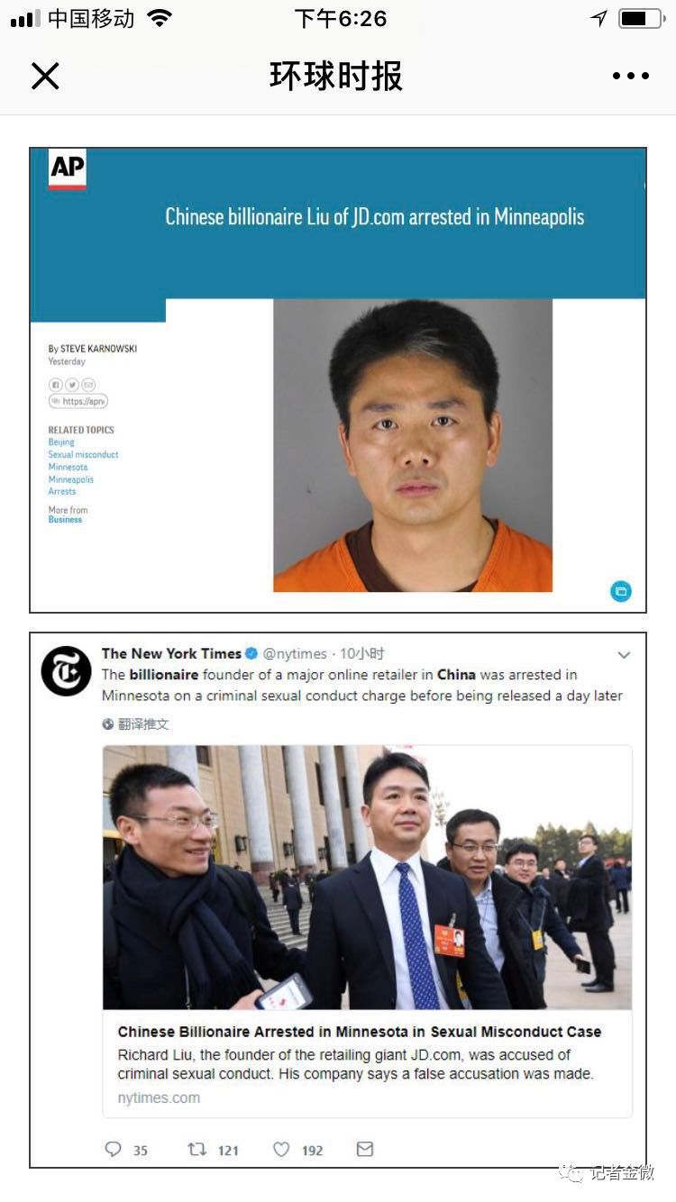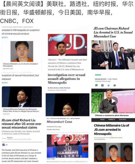 刘强东性侵案,至少还处于扑朔迷离中,但路透社、美联社、纽约时报、华尔街日报、华盛顿邮报等步调一致动作,将此炒作成了国际性新闻。背后的深意值得关注。 文章来源|记者金微 九月开学第一课,刘强东运气有点背。 一起扑朔迷离的性侵案,被外媒炒成了国际大新闻。 今天,刘强穿狱服的照片成为各大新闻网站的头条、热搜,朋友圈持续刷屏,京东集团创始人的形象已坍塌。 中西方文化差异 在美国,狱服照片被称为mug shot,是警方逮捕时的纪录照片。 网上,有很多美国名人的mug shot流传,但mug shot并不意味着一定有罪,是否有罪要等待法庭决定。也就是说,刘强东狱服照并不意味着一定有罪,有待法院裁定。 但是,因为东西方文化认知的差距,这种公众媒体塑造的狱服形象给人的印象就是刘强东有罪。况且,由西方几大主流媒体共同背书,造成中国舆论的躁动。